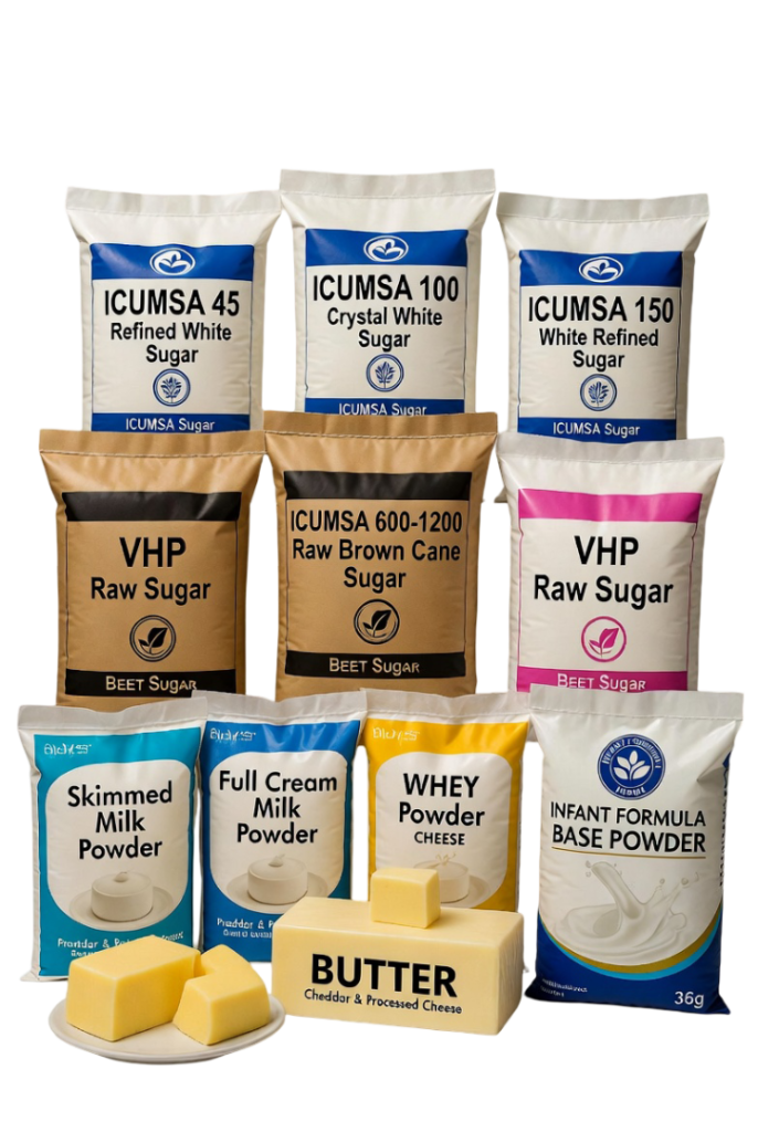 Discover our high-quality ICUMSA sugars, milk powders, whey, cheese, butter, and infant formula bases—perfect for food production, confectionery, beverages, nutrition, and industrial applications worldwide. Reliable sourcing, consistent excellence, competitive bulk supply.
